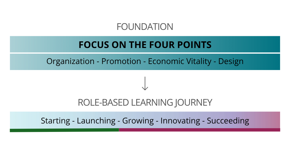 Built the Focus on the Four Points series and a role-based learning journey from Starting through Succeeding.