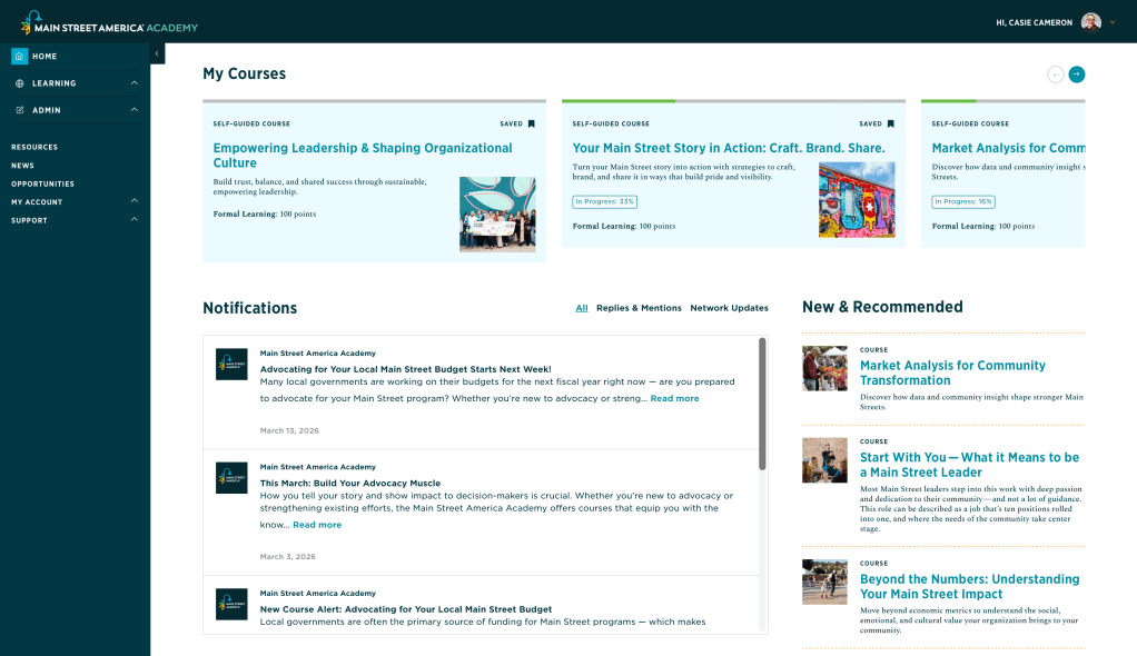 The Academy connects courses, tools, and learning pathways into a cohesive experience that supports real-world application, reduces friction for local leaders, and builds long-term capacity.